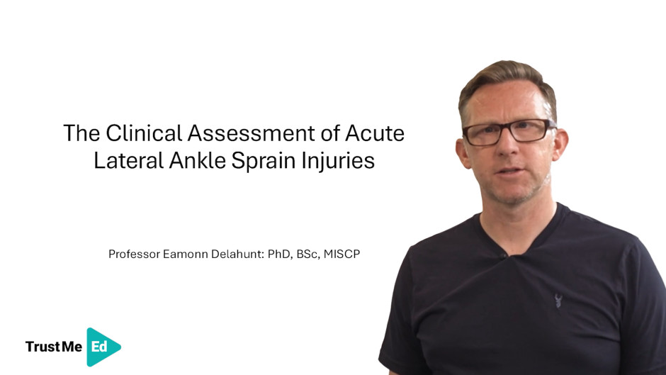 Lateral ankle sprains are the most common lower limb musculoskeletal injury incurred by individuals who participate in sports and recreational physical activities, and as such, the ‘simple ankle sprain’ constitutes a substantial healthcare burden. In their 2019 consensus statement on the clinical assessment of acute lateral ankle sprain injuries, the International Ankle Consortium describe a pragmatic minimum standard clinical diagnostic assessment for acute lateral ankle sprain patients. The objective of this lecture is to inform clinicians on how to correctly perform this diagnostic assessment.